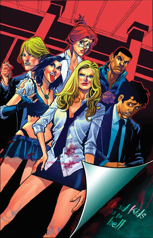 I tell ya what, the writers who wrote this book have a real knack for awesome midnight black wit teenage dialogue. The dialogue in it is very sharp and engaging with some very outrageous remarks from these "Bad Kids" as well. Number 1: This is what made me love BKGtH. It was the writing. Kudos to the writers.
